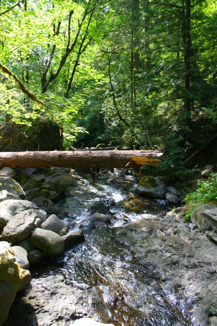 Multnomah Creek runs through the temperate rain forest above the falls.