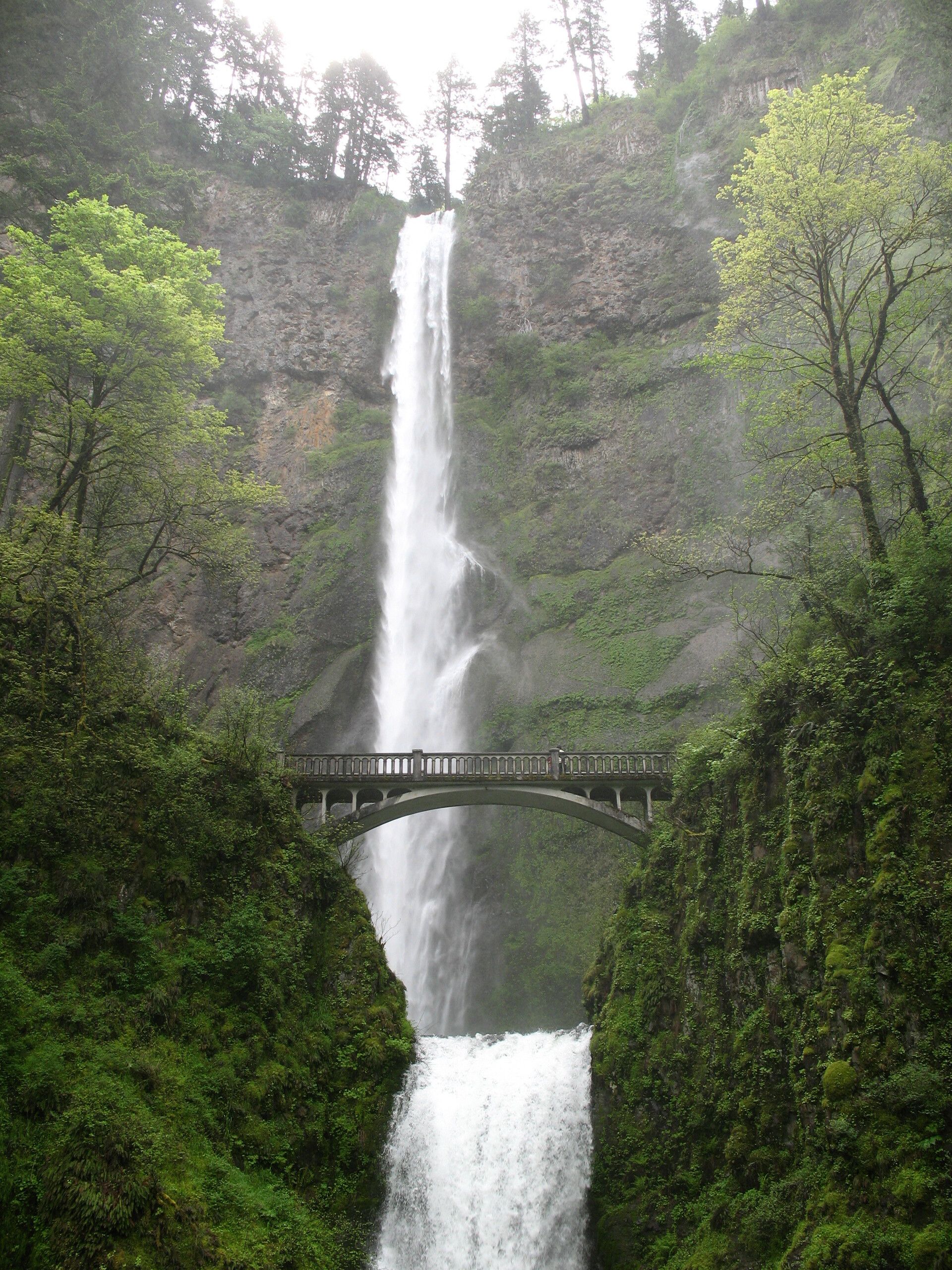 Reinforced concrete arch of the Benson Footbridge crosses Multnomah Falls